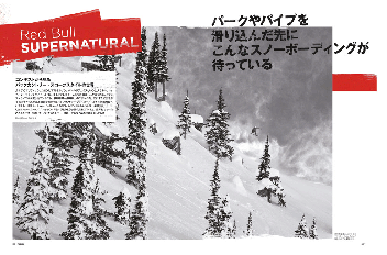 トラビス・ライスが発案したまるでテレビゲームのようなコンテストSUPERNATURAL。これまでビデオや写真の世界でしか見る機会が無かったバックカントリーでのスロープスタイルが表舞台へ浮上し、招集されたムービースターたちがフィルミング時のような滑りを競い合った。世界初となったこのコンテストを通して、バックカントリー・スロープスタイルの世界に迫る。 |