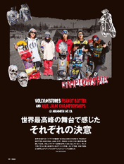 世界各地でさまざまな予選がおこなわれ、勝ち上がったトップアマが集結し、競い合う「VOLCOM STONES PEANUT BUTTER AND RAIL JAM CHAMPIONSHIPS」。今回、史上最多の5人の日本人が参加。日本のトップアマが世界に挑戦し、それぞれが感じた想いとは。 |