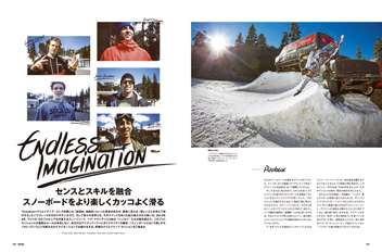 "クリエイティブ" を簡単に言えば「新しいことを考えて実行する」こと。2014年4月、ベア・マウンテンに5名の "ヘンタイ" が集まった。そこには退屈なルールは存在しない。あるのはアイデンティティとオリジナリティの融合。スノーボードの楽しみ方を異次元のイマジネーションでお届けする、究極のクリエイティブセッション。 |