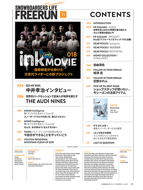 昨年『KAMIKAZU』を世に送り出した國母和宏が、新たなムービープロジェクトを始動。『ink』と名付けられたこのプロジェクトには若手ライダーをカズ自らフックアップした。なぜ若手を選んだのかなどカズの秘められた想いにフォーカス。出演ライダーたちの言葉とともに特集する。 |