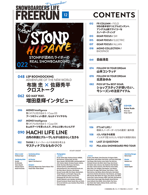 今季のFREERUNは、ライダーたちが必死になってつくりあげている様々なムービーシーンを軸に、スノーボードを通して深まる人と人との繋がりの大切さ、思い、そんな熱い部分をフォーカスしていきます。様々な角度からピックアップするそれぞれのスノーボーダーたちの思いを感じていただければ幸いです。