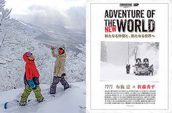 世界のフィルムシーンに日本人の実力を知らしめて来たパイオニア、布施 忠とフィルマー越路太郎氏からなるLSPが、スノーモービルで日本の未開の地を切り開きながら2年間に渡って撮影を繰り返しリリースした映像「BOONDOCKING」。布施と、出演ライダーのなかでも彼と行動することが多かった佐藤秀平に対談してもらい、撮影秘話やそれぞれの思いを語ってもらった。 |