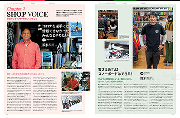 暖冬とコロナというふたつの大きな波はスノーボードショップという場所にも押し寄せた。例年よりも短いシーズン、集客できないジレンマ…。何をどのように伝えるべきなのか、どんな行動を取るべきか。各地のショップが見つめ直したショップとしてのあり方とは。 |
