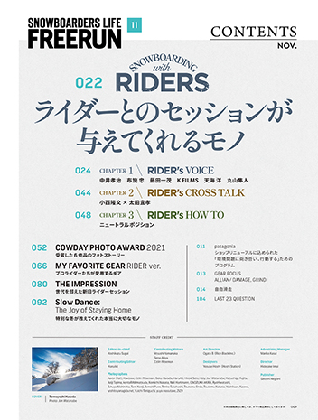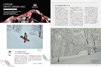 2015年から日本のジャンプ・ジブのナンバーワンフリースタイラー決定戦として開催されてきたCOWDAYが、このコロナ禍に適した開催スタイルを選択したオンライン型ムービーコンテストして開催された。用意された6つのカテゴリーの中から「フォト部門」にフォーカス合わせ写真に込められた想いや、その写真を撮るまでのプロセス、ライダーの想いをインタビューしました。 |