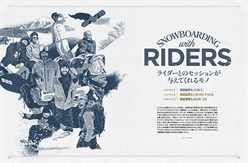様々な日本のトッププロスノーボーダーが、一般スノーボーダーを対象にしたセッションを行なっているのをご存知だろうか。彼らが培ってきた技術を間近に見られて、その後ろをついて滑りながら形を真似ることで理想のスタイルに近づいていける。通り一遍の技術の伝授ではない、それぞれが唯一無二の体験現場。それぞれのライダー考え方やセッション内容までをご紹介します。 |