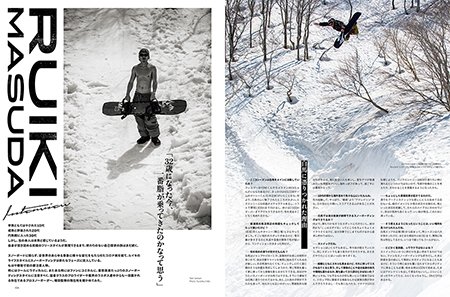 早熟ともてはやされた10代。成熟と評価された20代。円熟期に入った30代。しかし、当の本人は未熟と感じているようだ。自身が突き詰める究極のフリースタイルが表現できるまで、終わりのない自己探求の旅はまだ続く。時にはクールにラディカルに、またある時にはファンにコミカルに、喜怒哀楽たっぷりのスノーボーディングスタイルに注目すべく、増田塁揮の現在地を確かめてみた。 |