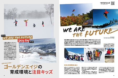 未来のニューエイジを目指すキッズたちの育成環境にフォーカスを当てた。この世代の子供たちがスノーボードに打ち込むには、本人たちの思いはもちろん、両親を含む周りの大人たちの考え方やサポートも大きな要素になるだろう。メキメキと力をつけ注目されつつあるキッズたちがどのような育成環境にいるのかを、2つのケースから探った。 |